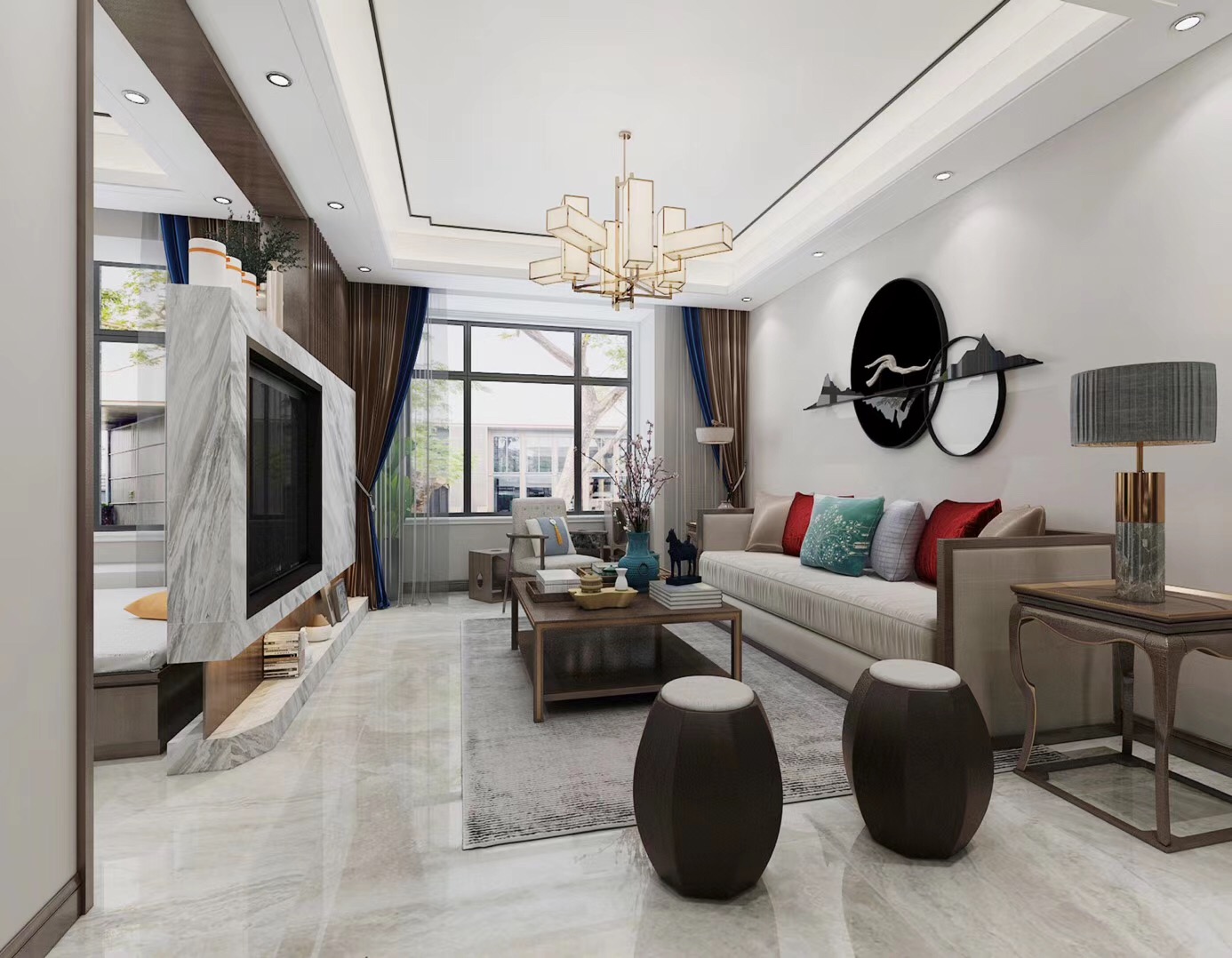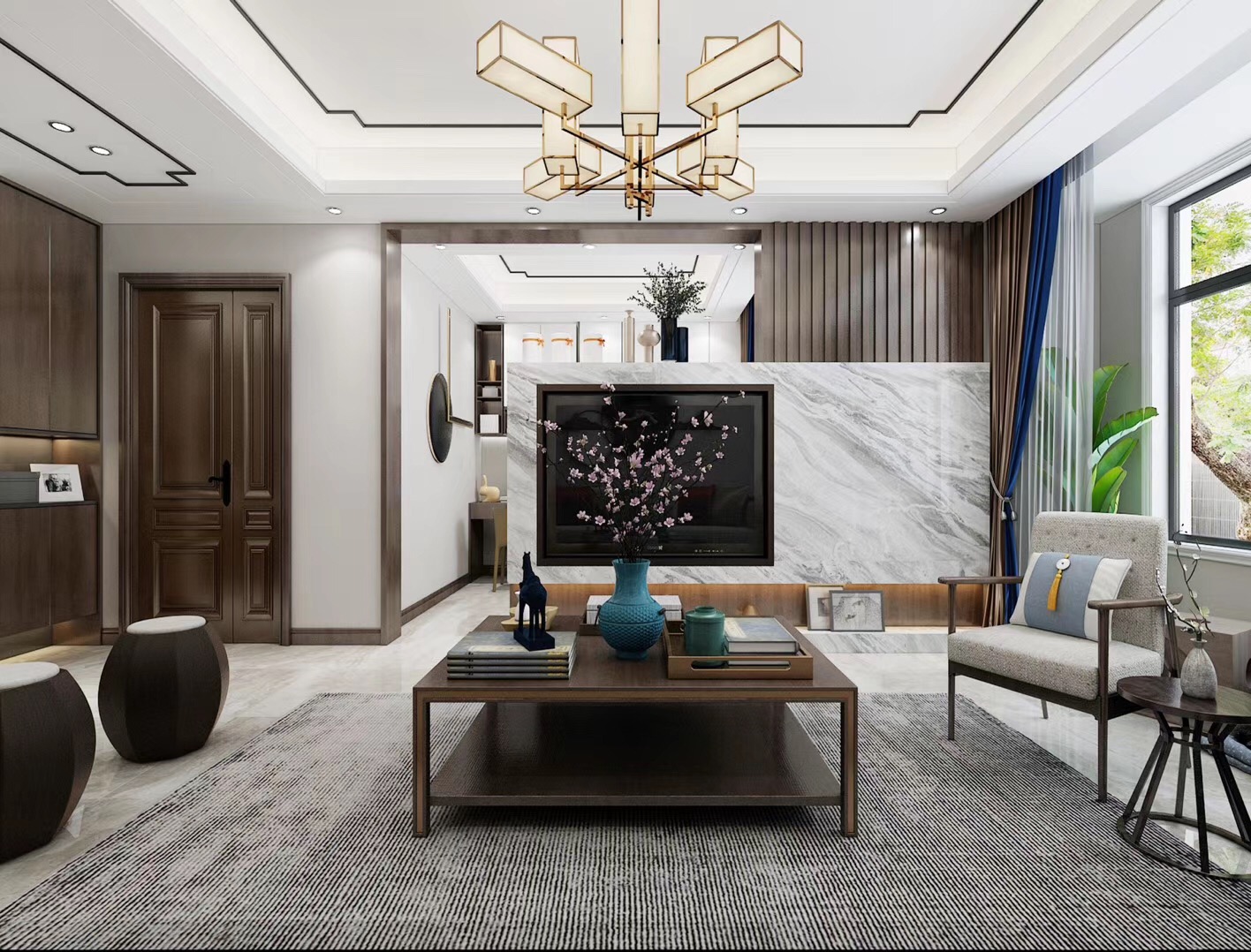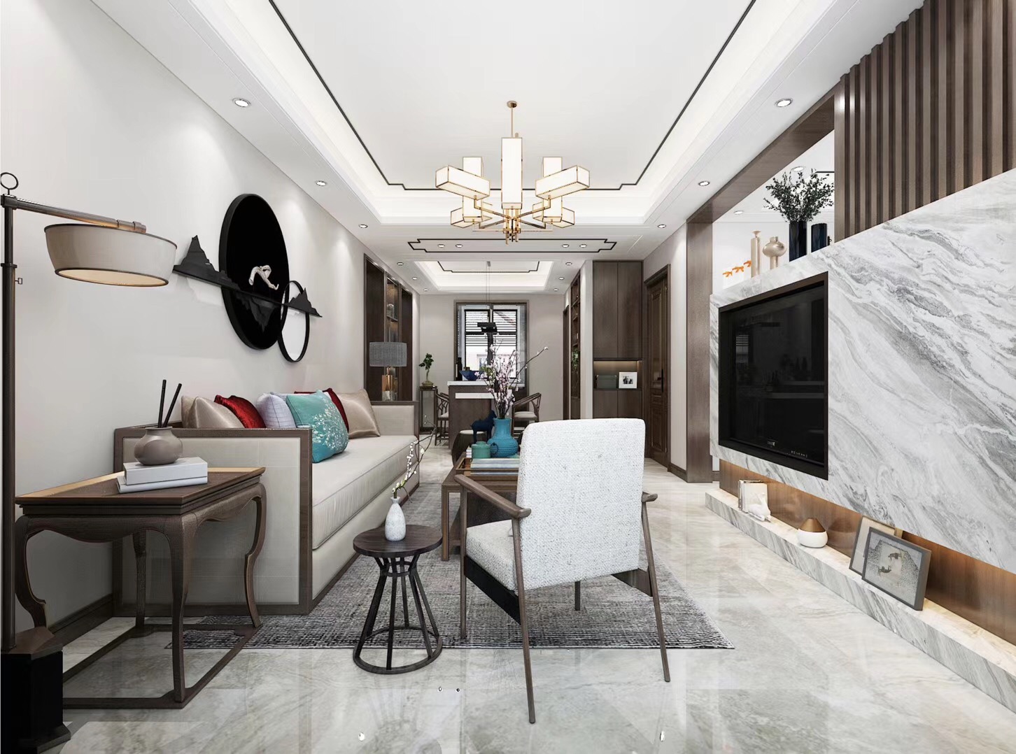 大眾上河灣145平三室兩廳兩衛(wèi)新中式風(fēng)格裝修,新中式風(fēng)格,既能滿足父母對(duì)中國(guó)風(fēng)的喜愛(ài),又能滿足年輕人對(duì)現(xiàn)代感的需求。