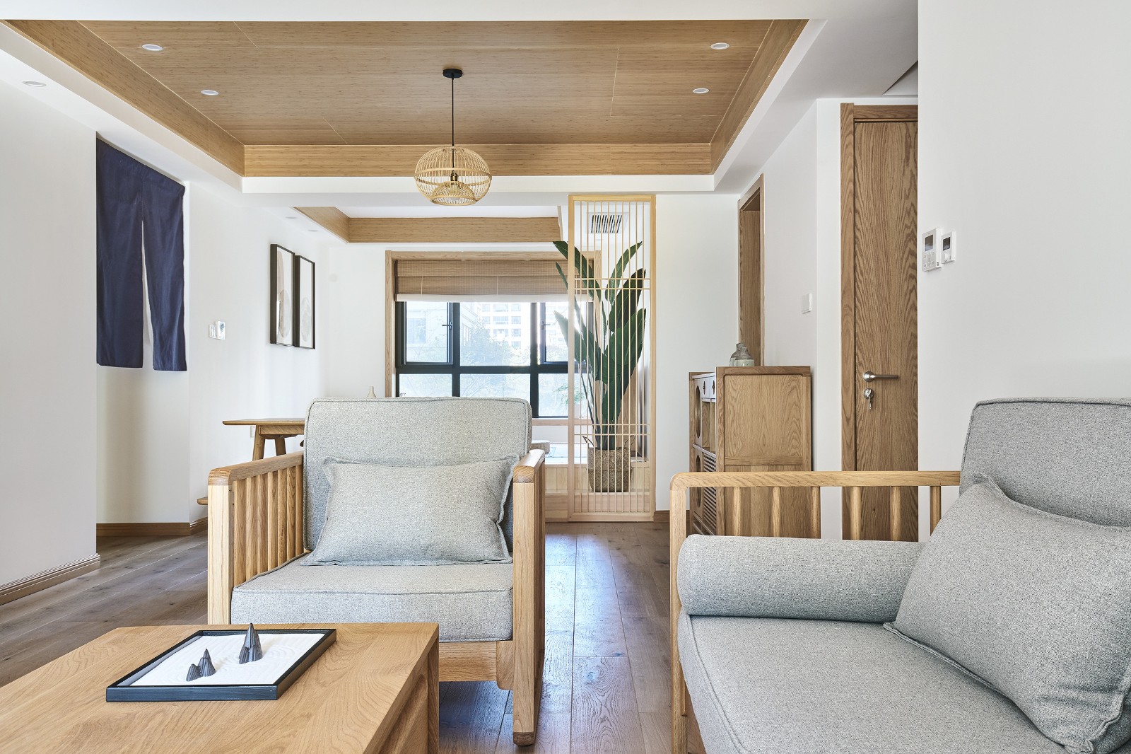 整個空間色調統(tǒng)一,白色與原木色的搭配簡單干凈
