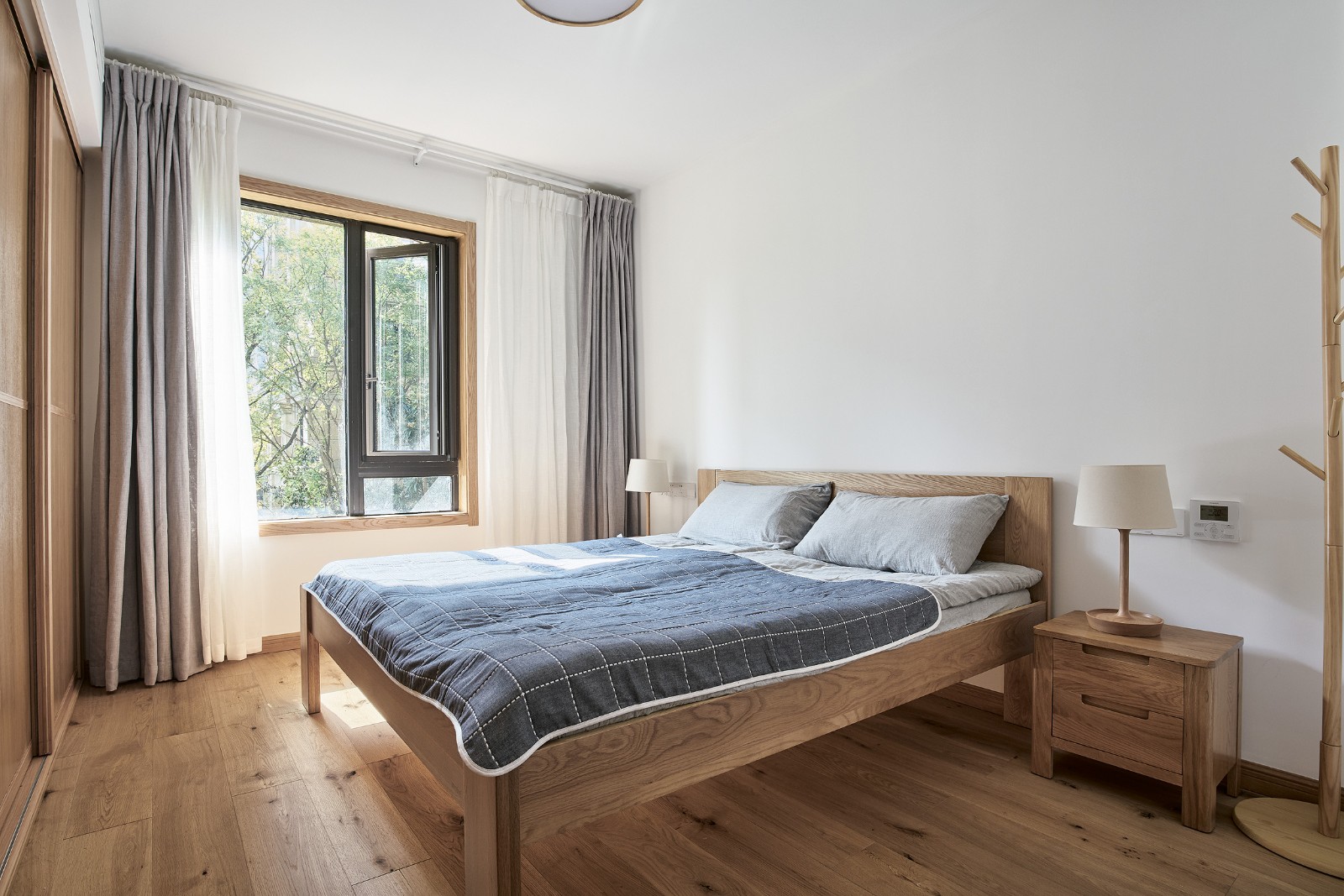 自然安寧的臥室,營造理想的睡眠環(huán)境。整面的儲物柜保證房間的干凈整潔。