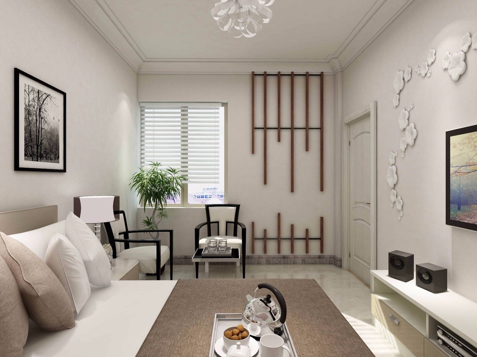 以白色為基調(diào),木色家具作為點(diǎn)綴,整個(gè)空間溫馨而舒適。